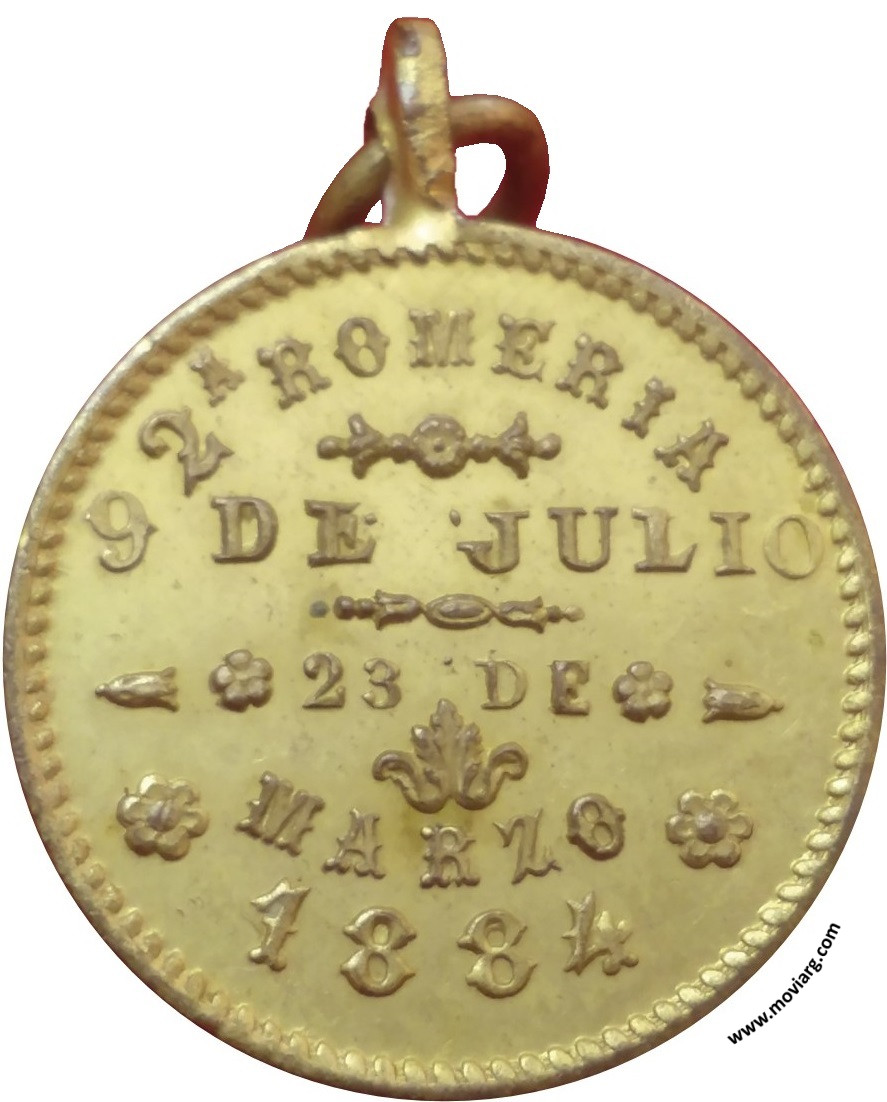 Colección Matías Losinno Anverso: 2A ROMERIA / 9 DE JULIO / 23 DE / MARZO / 1884Reverso: A BENEFICIO DEL / HOSPITAL / ESPAÑOL Referencia: | |