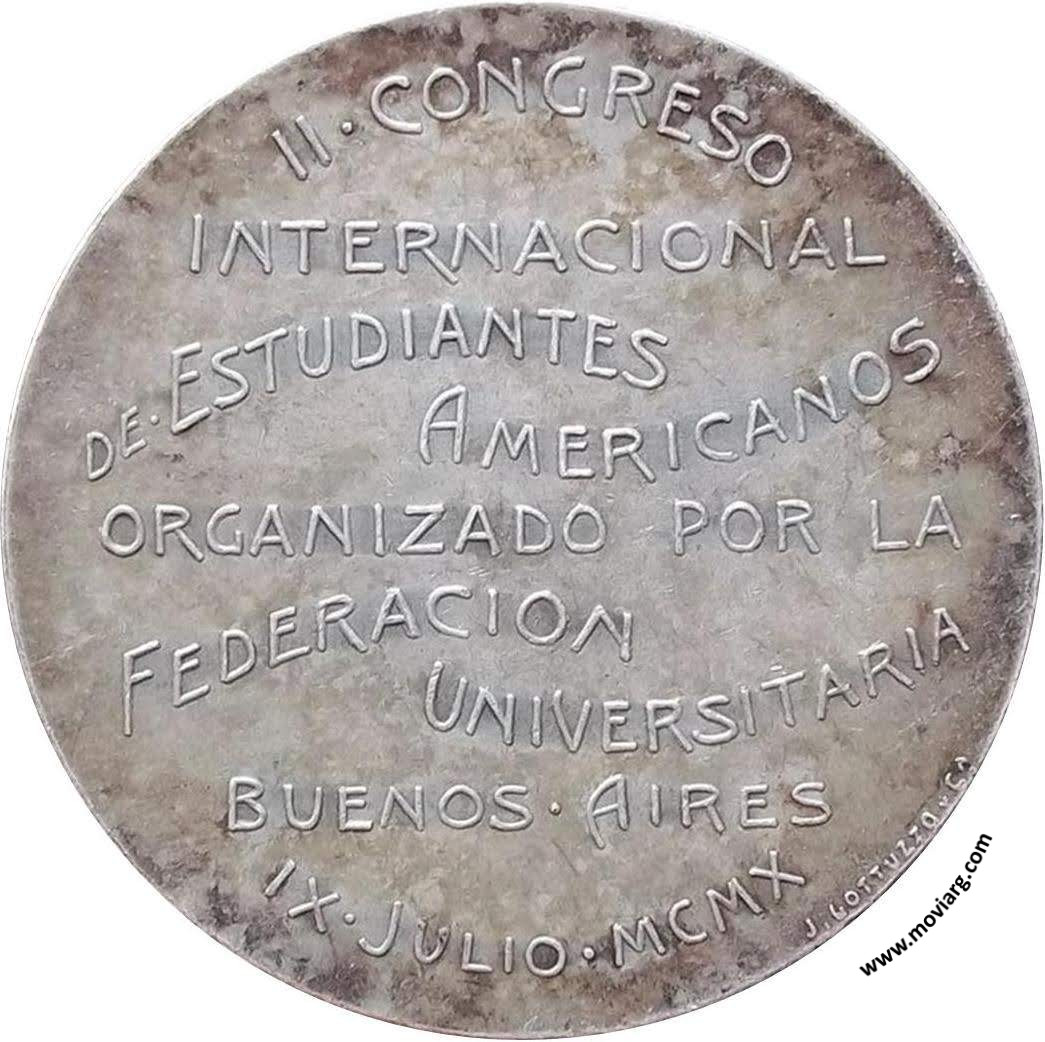 Anverso: Reverso: II CONGRESO / INTERNACIONAL / DE ESTUDIANTES / AMERICANOS / ORGANIZADO POR LA / FEDERACION / UNIVERSITARIA / BUENOS AIRES / IX JULIO MCMX. Firma: J. GOTTUZZO Y CA. Referencia: | |