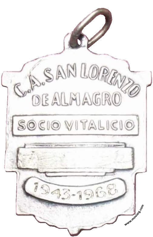 Anverso: Campo: CASL DE A Reverso: C.A. SAN LORENZO / DE ALMAGRO / SOCIO VITALICIO / [ 1943 - 1968 ] Referencia: | |