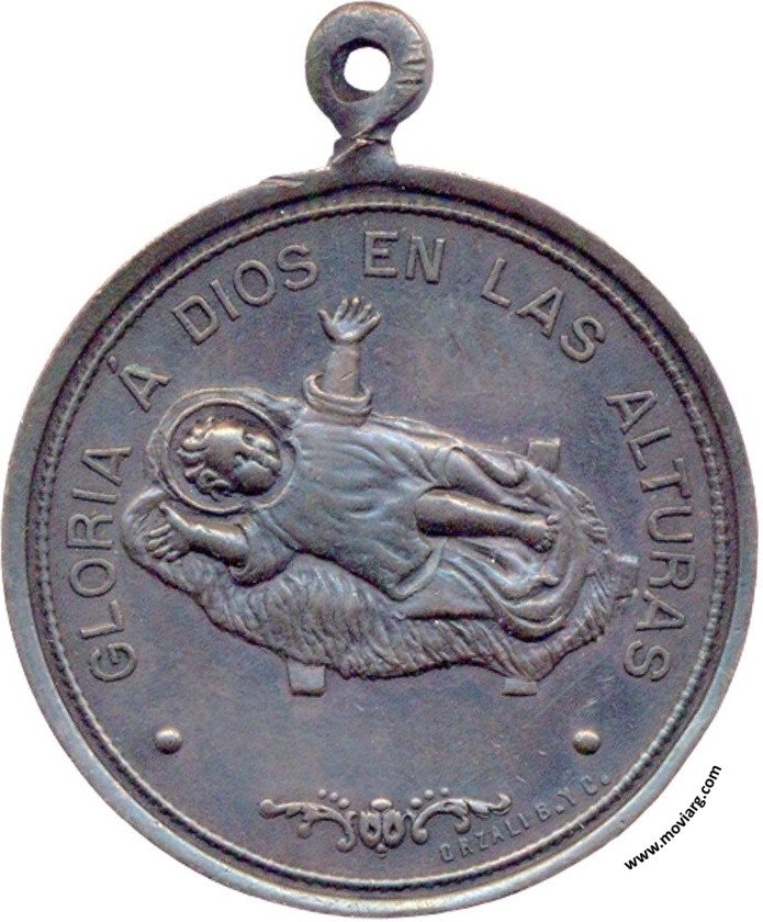 Anverso: VIRGEN INMACULADA / RUEGA POR NOSOTROS / VILLA MARIA Reverso: GLORIA Á DIOS EN LA ALTURAS. Firma: ORZALI B. Y C. Referencia: | |