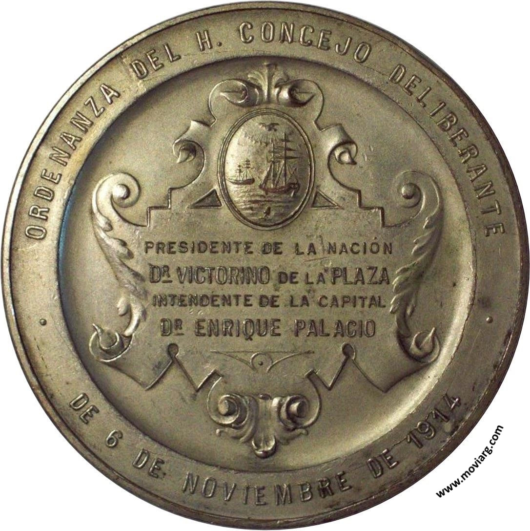 Anverso: PARQUE JOSÉ EVARISTO URIBURU / 6 DE FEBRERO 1915. Firma: C. Y AF. ROSSI Reverso: ORDENANZA DEL H. CONCEJO DELIBERANTE / DE 6 DE NOVIEMBRE DE 1914 / PRESIDENTE DE LA NACIÓN / DR. VICTORINO DE LA PLAZA / INTENDENTE DE LA CAPITAL / DR. ENRIQUE PALACIO Canto: Liso. COBRE Referencia: | |