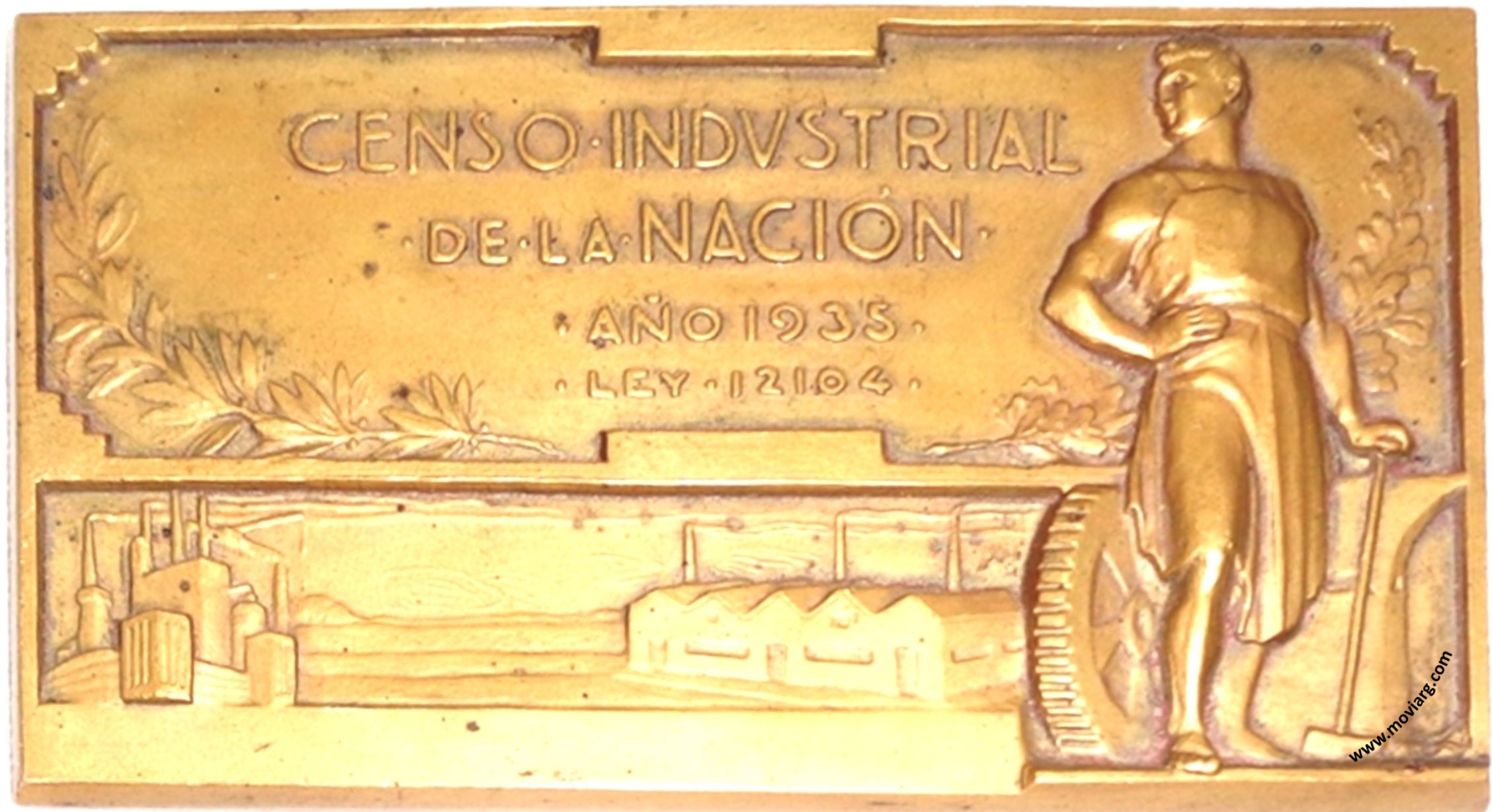 Anverso: CENSO INDUSTRIAL / DE LA NACIÓN / AÑO 1935 / LEY 12104 Reverso: PRESIDENTE DE LA NACION / GRAL. AGUSTIN P. JUSTO / MINISTRO DE AGRICULTURA / DR. MIGUEL ANGEL CARCANO / PRESIDENTE DE LA COMISION NACIONAL DEL CENSO / D. CARLOS BREBBIA / SUBSECRETARIO DE AGRICULTURA / BUENOS AIRES / 1937. Firma: GOTTUZZO Y PIANA Referencia: | |