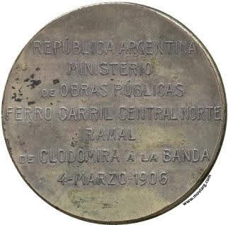 | Año: 1906 Ferrocarriles Metal: Plateado - Peso: 24gr - Módulo: 38mm Grabador: Juan Gottuzzo | |