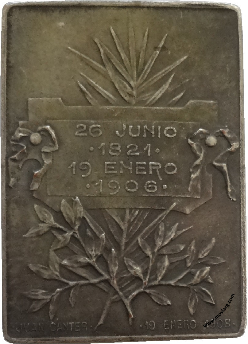 Anverso: MITRE. Firma: BELLAGAMBA / Y ROSSI Reverso: 26 JUNIO / 1821 / 19 ENERO / 1906. Exergo: JUAN CANTER / 19 ENERO 1908 Canto: Liso Referencia: | |