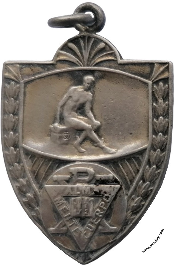 Anverso: ALMA / MENTE / CUERPO Reverso: ASOCIACIÓN CRISTIANA / DE JOVENES / DE BUENOS AIRES / 1R. PREMIO / WATER-POLO / 1924 / [ A. CRANWELL ]. Firma: CONST. ROSSI Referencia: | |