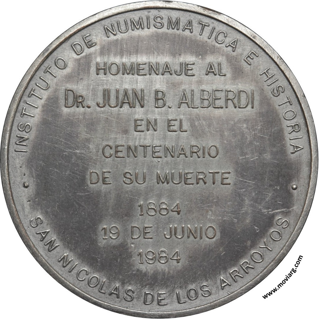 Colección @parryyanumismatico Anverso: JUAN B. / ALBERDIReverso: INSTITUTO DE NUMISMATICA E HISTORIA / SAN NICOLAS DE LOS ARROYOS / HOMENAJE AL / DR. JUAN B. ALBERDI / EN EL / CENTENARIO / DE SU MUERTE / 1884 / 19 DE JUNIO / 1984 Referencia: | |