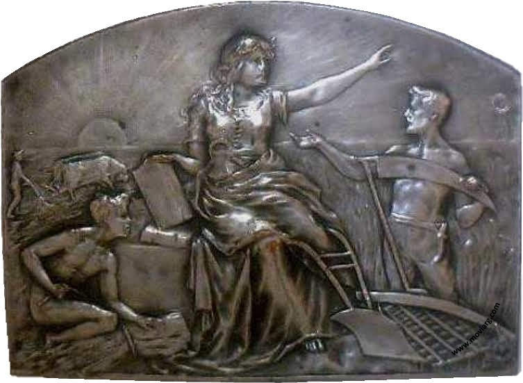 | Año: 1909 Obras y Servicios Públicos Metal: Plateado - Peso: 100gr - Módulo: 50x75mm - Rotación: 12hrs Grabador: Juan Gottuzzo y Ca. | |