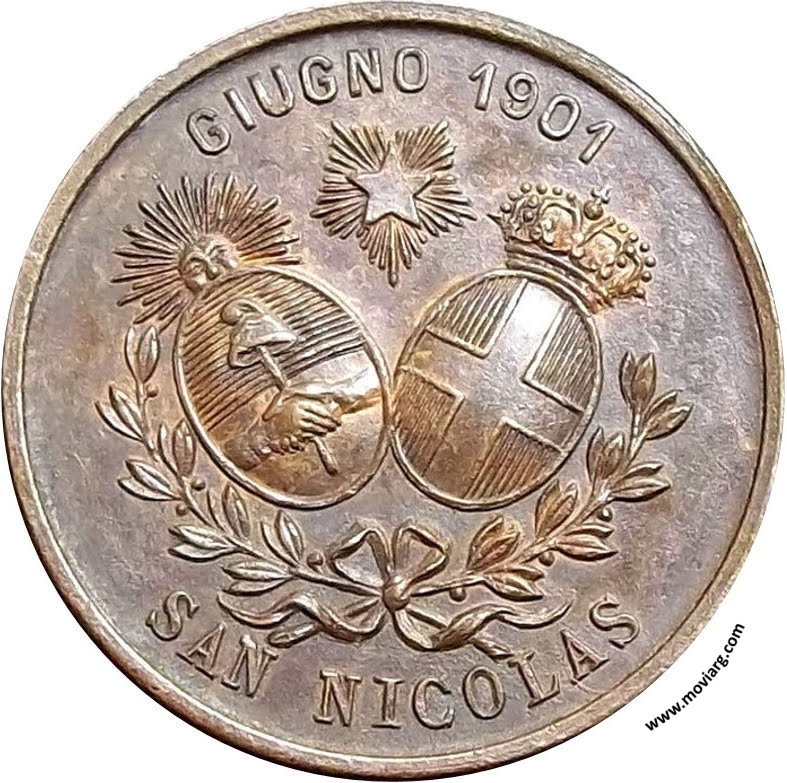 Anverso: GIUGNO 1901 / SAN NICOLAS Reverso: PREMIO / SOCIETÁ ITALIANA / UNIONE E FRATELLANZA Referencia: | |