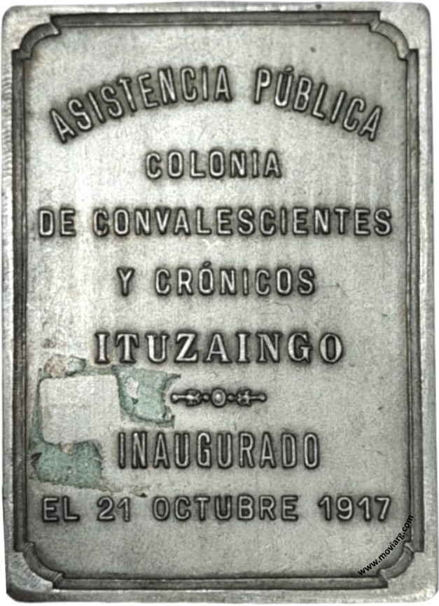 Anverso: Firma: CONSTANTE ROSSI Reverso: ASISTENCIA PÚBLICA / COLONIA / DE CONVALESCIENTES / Y CRÓNICOS / ITUZAINGO / INAUGURADO / EL 21 OCTUBRE 1917 Referencia: | |