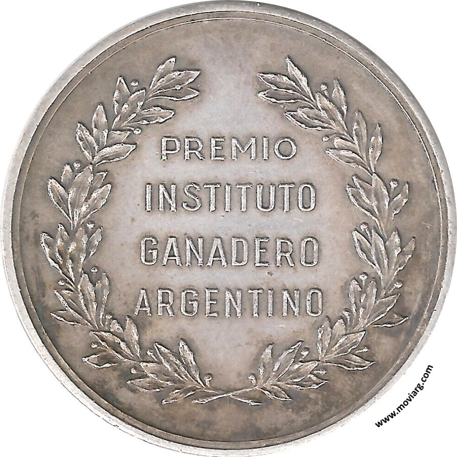 Anverso: REPÚBLICA ARGENTINA / MINISTERIO DE ECONOMÍA DE LA NACIÓN / INSTITUTO GANADERO ARGENTINO / LEY 13.991 Reverso: PREMIO / INSTITUTO / GANADERO / ARGENTINO Canto: Liso. PLATA 900 Referencia: | |