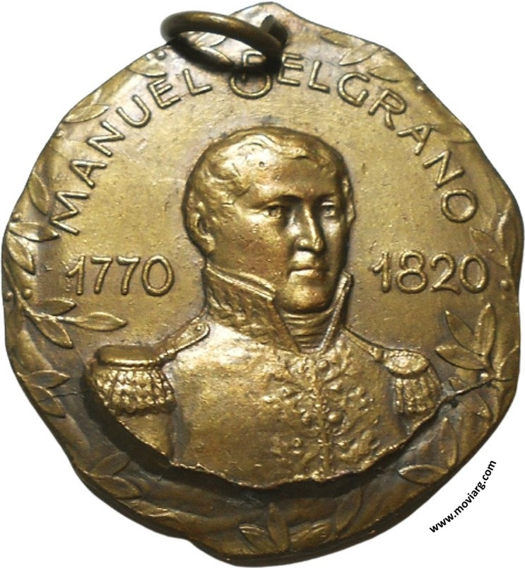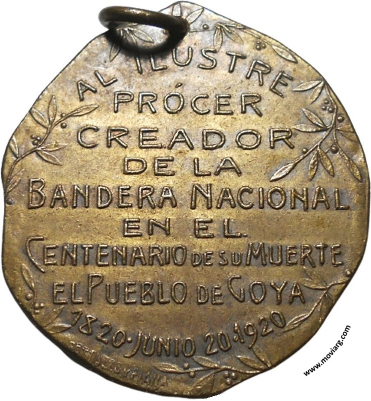 Numddiez Coleccionista Anverso: MANUEL BELGRANO / 1770 / 1820Reverso: AL ILUSTRE / PRÓCER / CREADOR / DE LA / BANDERA NACIONAL / EN EL / CENTENARIO DE SU MUERTO / EL PUEBLO DE GOYA / 1820 · JUNIO 20 · 1920. Firma: GOTTUZZO Y PIANA Referencia: | |
