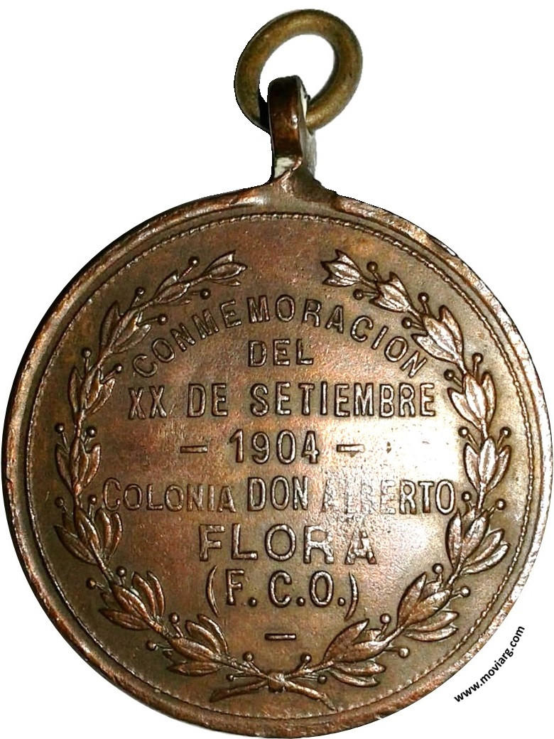 Anverso: Firma: BELLAGAMBA Y ROSSI Reverso: CONMEMORACION / DEL / XX DE SETIEMBRE / 1904 / COLONIA DON ALBERTO / FLORA / ( F.C.O. ) Referencia: | |