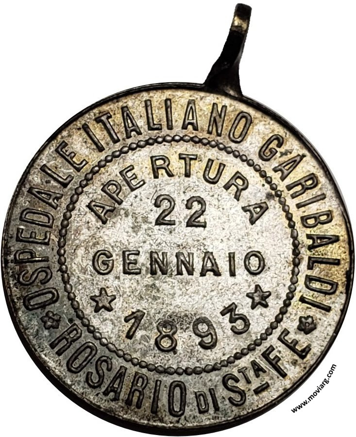 Anverso: Reverso: OSPEDALE ITALIANO GARIBALDI / ROSARIO DI STA. FE / APERTURA / 22 / GENNAIO / 1893 Referencia: | |