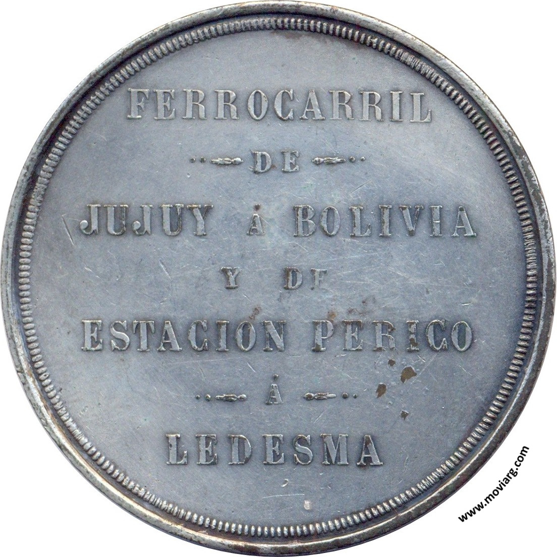 Anverso: INAUGURACION DE LAS OBRAS DEL FERROCARRIL DE JUJUY Á BOLIVIA Y DE ESTACION PERICO Á LEDESMA / ENERO 1903. Firma: BELLAGAMBA / Y ROSSI Reverso: FERROCARRIL / DE / JUJUY Á BOLIVIA / Y DE / ESTACION PERICO / Á / LEDESMA Referencia: | |