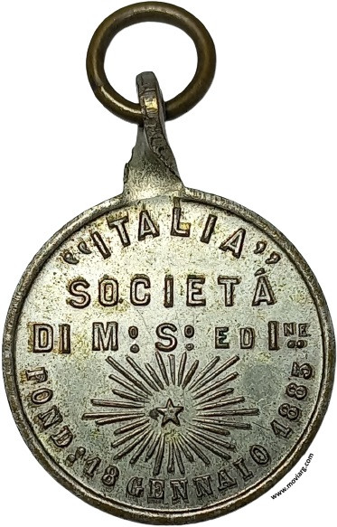 Anverso: "ITALIA" / SOCIETÁ / DI MO. SO. ED INE. / FOND: 18 GENNAIO 1883 Reverso: COLLOCAZIONE / PIETRA / FONDAMENTALE / EDIFICIO SOCIALE / 6 GENNAIO 1889 Referencia: | |