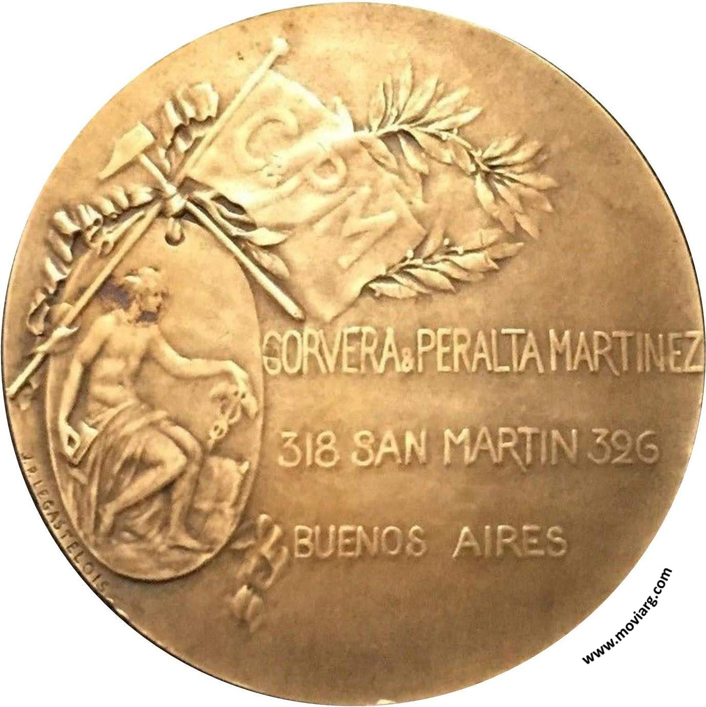Anverso: REPUBLICA ARGENTINA / 1810 / 1910. Firma: J.P. LEGASTELOIS Reverso: CORVERA & PERALTA MARTINEZ / 318 SAN MARTIN 326 / BUENOS AIRES. Firma: J.P. LEGASTELOIS Canto: Liso. BRONZE Referencia: | |