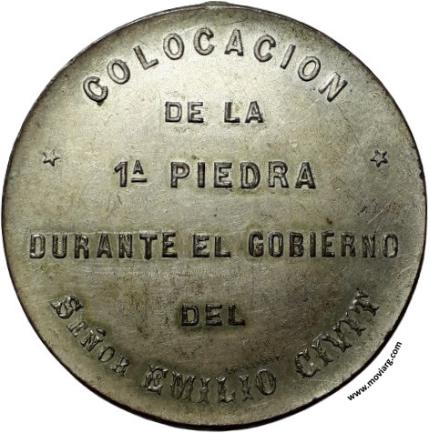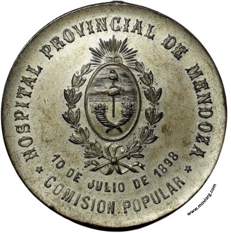 Anverso: HOSPITAL PROVINCIAL DE MENDOZA / 10 DE JULIO DE 1898 / COMISION POPULAR Reverso: COLOCACION / DE LA / 1A. PIEDRA / DURANTE EL GOBIERNO / DEL / SEÑOR EMILIO CIVIT. Firma: ORZALI B. Y C. Referencia: | |