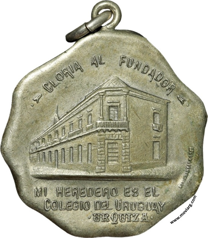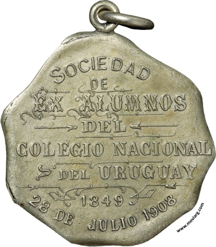 Anverso: GLORIA AL FUNDADOR / MI HEREDERO ES EL / COLEGIO DEL URUGUAY / URQUIZA. Firma: BELLAGAMBA Y ROSSI Reverso: SOCIEDAD / DE / EX ALUMNOS / DEL / COLEGIO NACIONAL / DEL URUGUAY / 1849 / 28 DE JULIO 1908 Referencia: | |