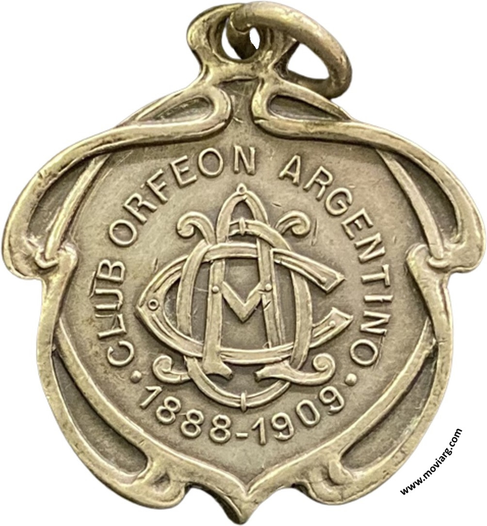 Anverso: CLUB ORFEON ARGENTINO / 1888 - 1909. Campo: C. O. A. Reverso: SOCIO / [ 168 ] Referencia: | |