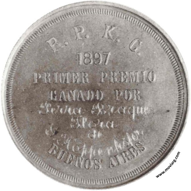 Libro Humberto Burzio Anverso: Firma: ORZALI B. Y C. / B. AIRESReverso: R. P. K. C. / 1897 / PRIMER PREMIO / GANADOR POR / [ PERRA BRAQUE ] / [ FLORA ] / [ DE ] / [ J. KOPPENHÖFER ] / BUENOS AIRES Canto: Humberto Burzio: "Buenos Aires en la medalla" 1981 p450. Referencia: BURZIO-1320 | |