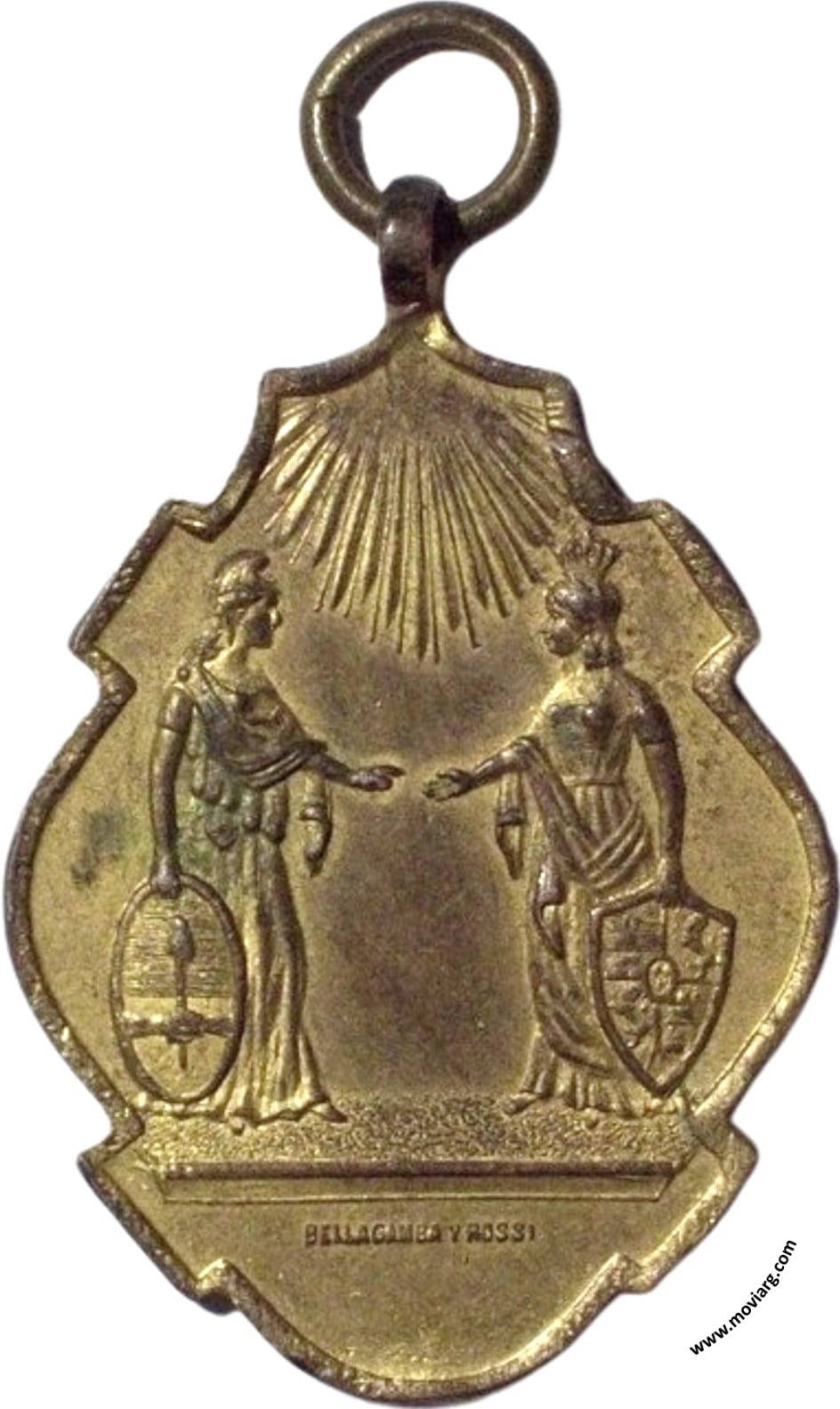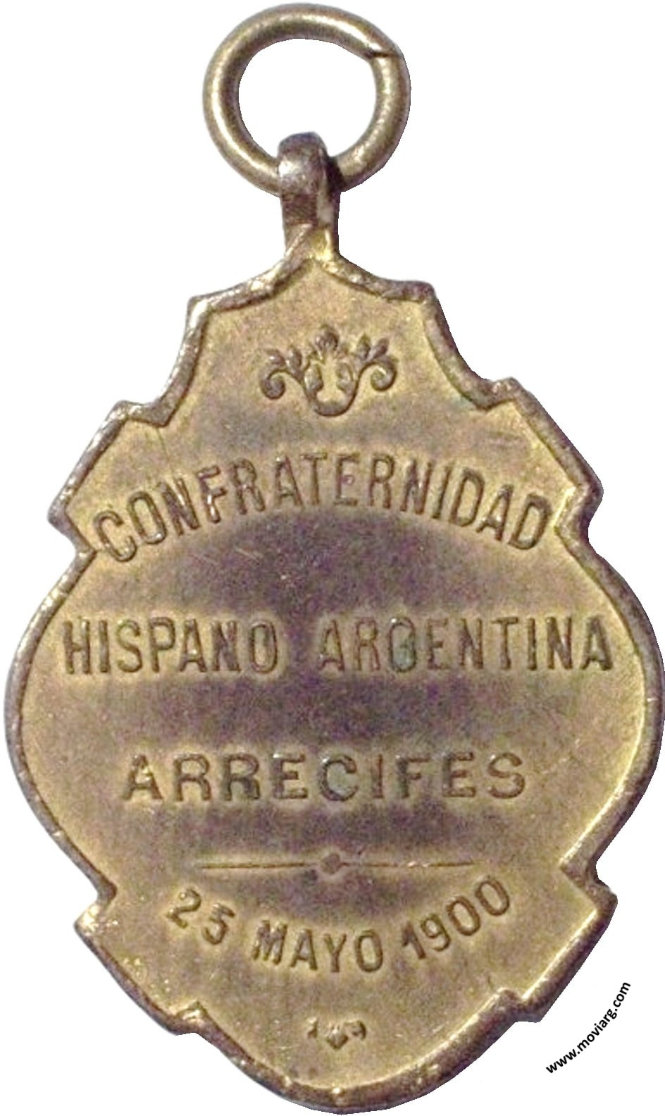 Anverso: Firma: BELLAGAMBA Y ROSSI Reverso: CONFRATERNIDAD / HISPANO ARGENTINA / ARRECIFES / 25 DE MAYO 1900 Referencia: | |