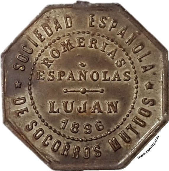 Anverso: Reverso: SOCIEDAD ESPAÑOLA / DE SOCORROS MUTUOS / ROMERIAS / ESPAÑOLAS / LUJAN / 1896 Referencia: | |