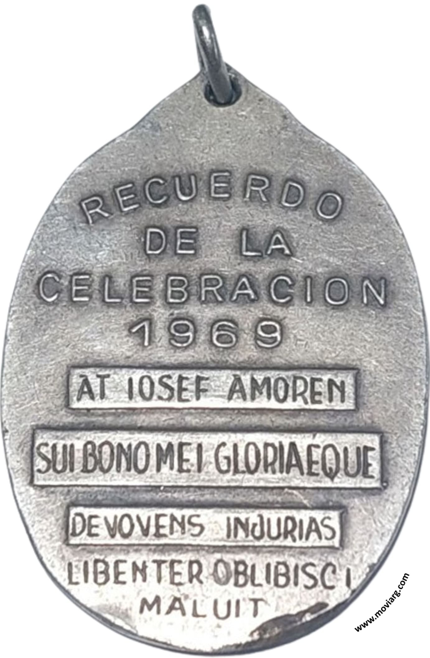 Anverso: SEMANA NACIONAL DE LAS CAMPAÑAS AL DESIERTO / TRENQUE LAUQUEN Reverso: RECUERDO / DE LA / CELEBRACION / 1969. Nota: Texto burilado escrito en latín que podría no estar relacionado con el contexto de la medalla [ AT IOSEF AMOREN ] / [ SUI BONO MEI GLORIAEQUE ] / [ DEVOVENS INJURIAS ] / [ LIBENTER OBLIBISCI ] / [ MALUIT ] Referencia: | |