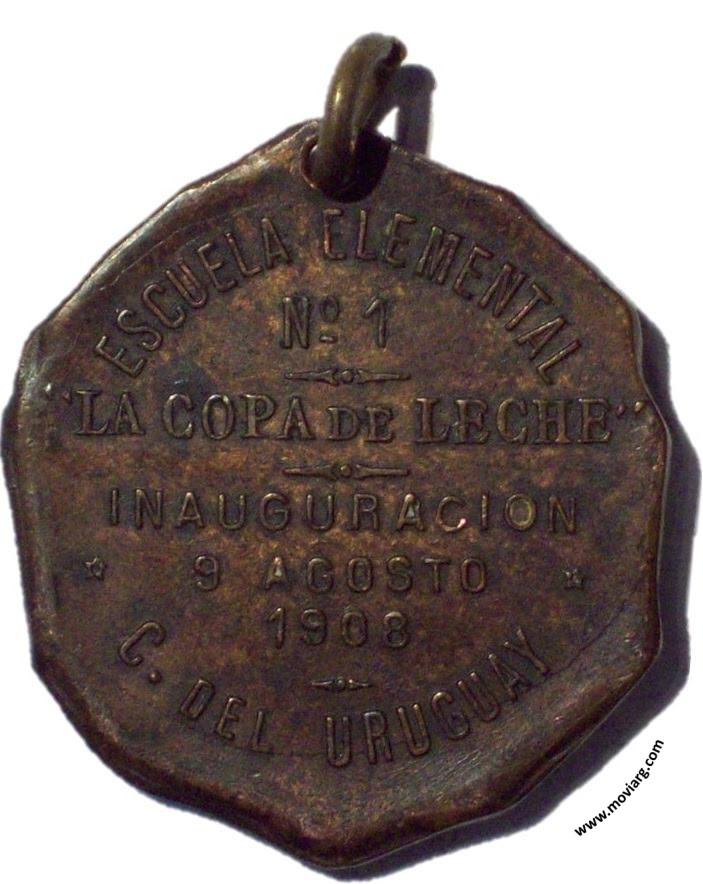 Anverso: Reverso: ESCUELA ELEMENTAL / N°1 / ' LA COPA DE LECHE ' / INAUGURACION / 9 AGOSTO / 1908 / C. DEL URUGUAY Referencia: | |