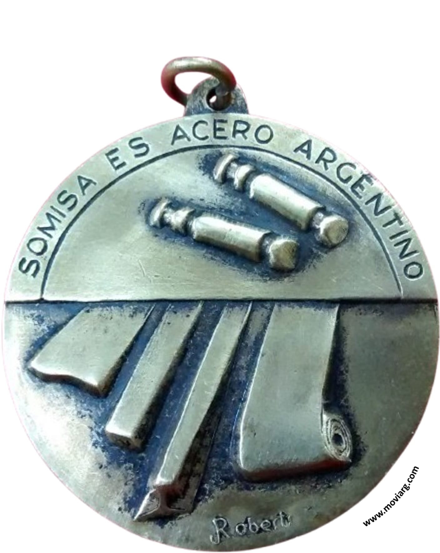Anverso: SOMISA ES ACERO ARGENTINO. Firma: J. ROBERTI Reverso: DEPARTAMENTO LAMINACION EN CALIENTE / 25 / AÑOS / 1961 - JUNIO - 1986 / PLANTA GRAL. SAVIO. Firma: PIANA (???). Campo: I.N.H. Referencia: | |