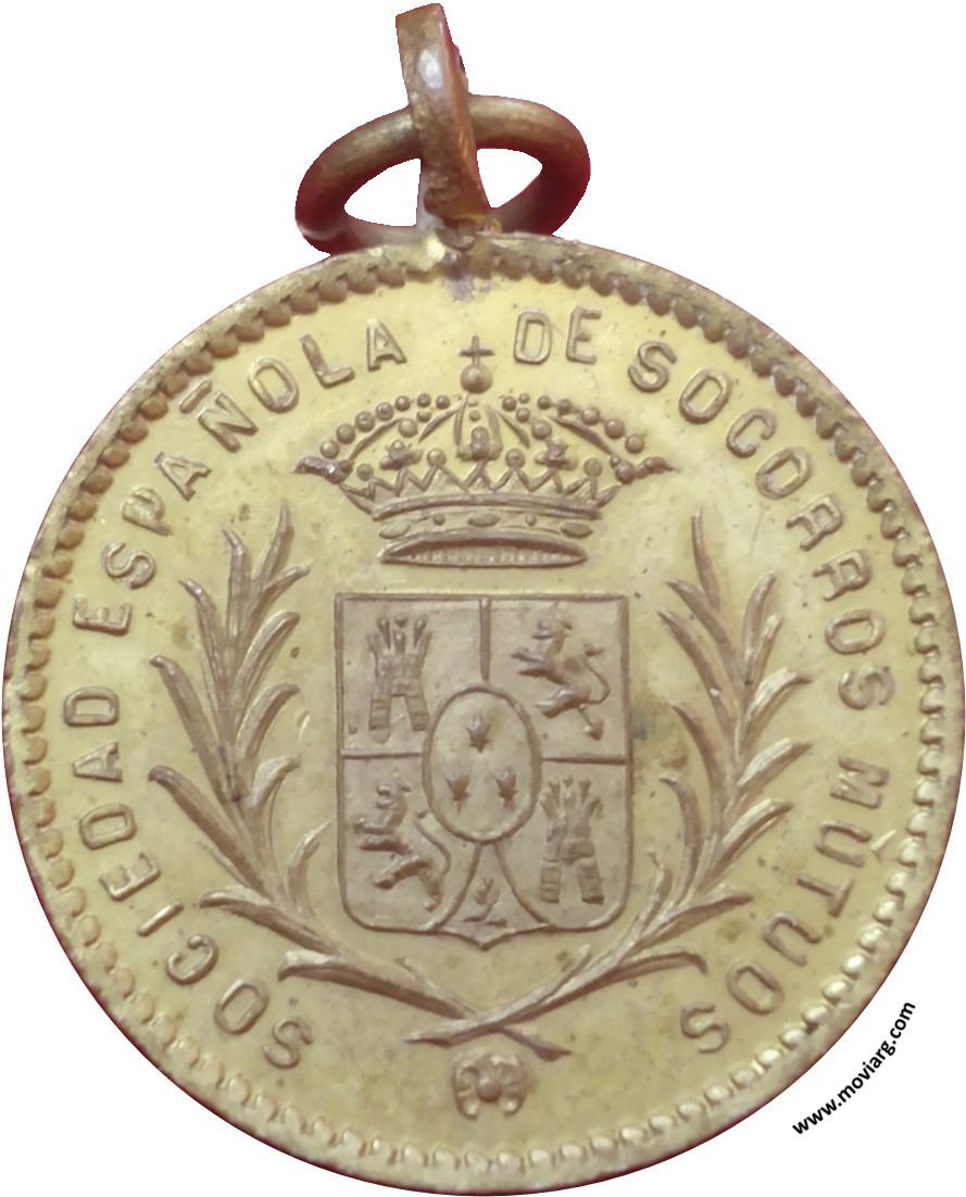 Colección Matías Losinno Anverso: SOCIEDAD ESPAÑOLA DE SOCORROS MUTUOSReverso: INAUGURACION DE LA ROMERIA ESPAÑOLA / 20 / DE / ABRIL / DE / 1883 / 9 DE JULIO Referencia: | |