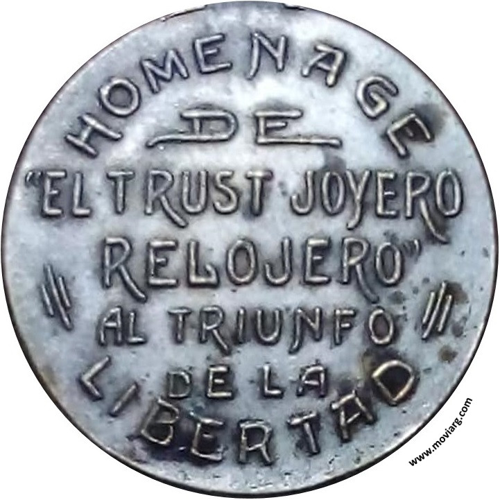 Anverso: PAZ. Firma: HORTA Reverso: HOMENAGE (sic) / DE / " EL TRUST JOYERO / RELOJERO " / AL TRIUNFO / DE LA / LIBERTAD Referencia: | |