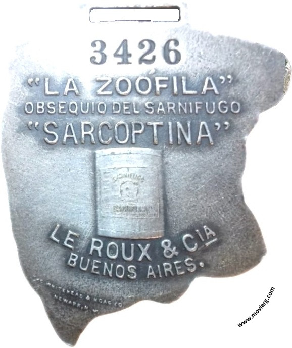 Anverso: Reverso: [ 3426 ] / " LA ZOÓFILA " / OBSEQUIO DEL SARNIFUGO / " SARCOPTINA " / LA ROUX & CIA. / BUENOS AIRES. Firma: THE WHITEHEAD & HORG CO. / NEWARK. N.J. Referencia: | |