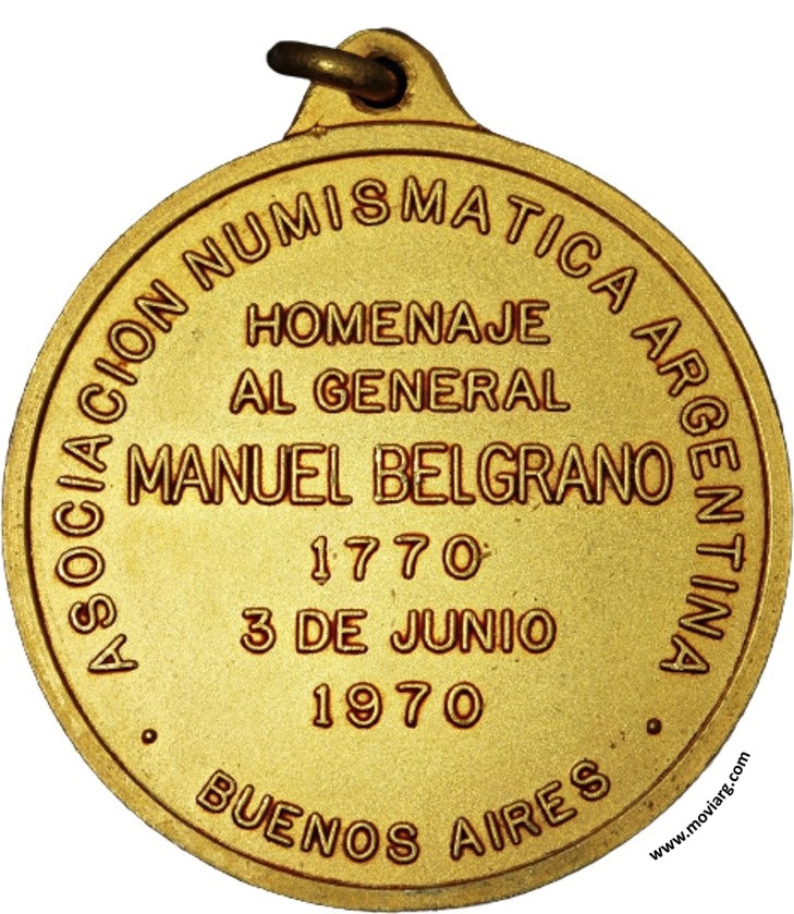 Anverso: Reverso: ASOCIACION NUMISMATICA ARGENTINA / HOMENAJE / AL GENERAL / MANUEL BELGRANO / 1770 / 3 DE JUNIO / 1970 / BUENOS AIRES Referencia: | |
