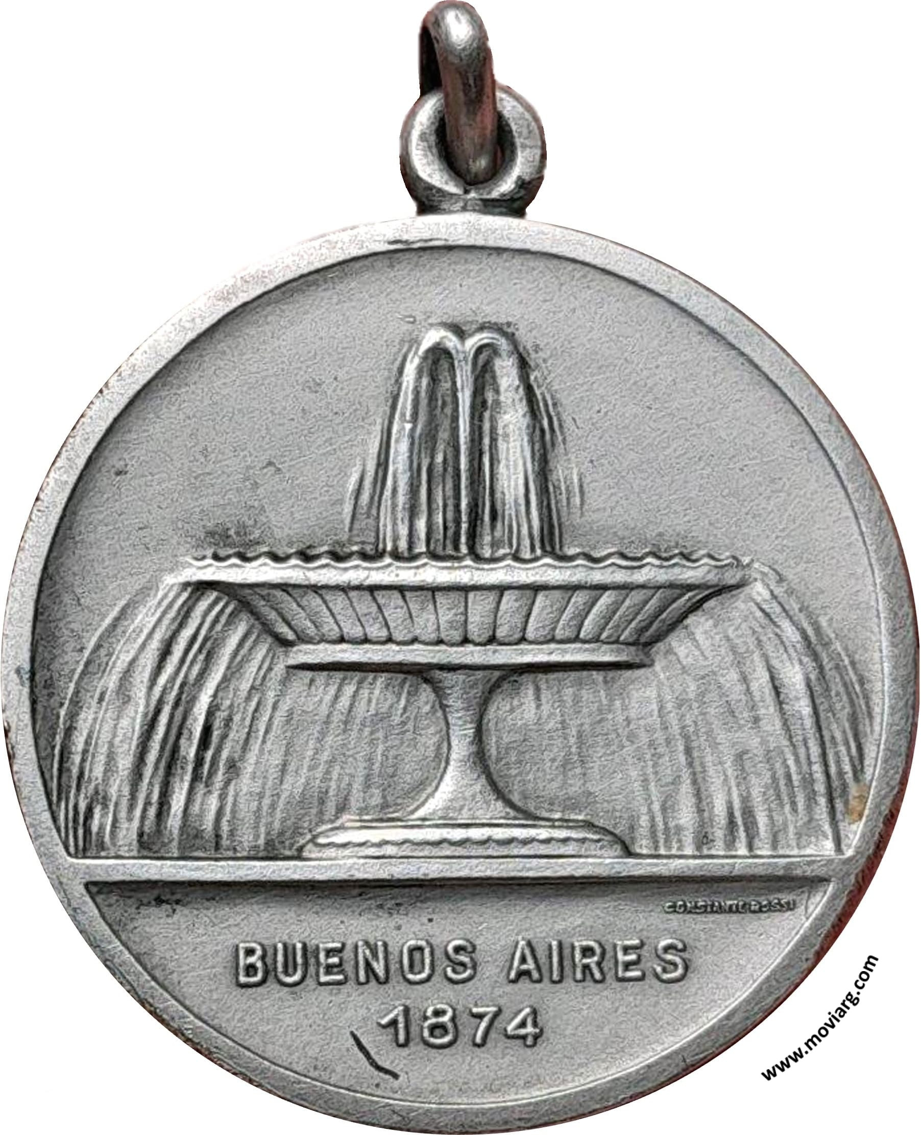 Anverso: BUENOS AIRES / 1874. Firma: CONSTANTE ROSSI Reverso: OBRAS SANITARIAS DE LA NACIÓN / 15 DE MAYO DE 1948 / A / [ ROMULO A. MENDOZA ] / POR SUS / 30 AÑOS DE SERVICIOS / PARA LA / CONTINUIDAD / DE SU / OBRA Referencia: | |