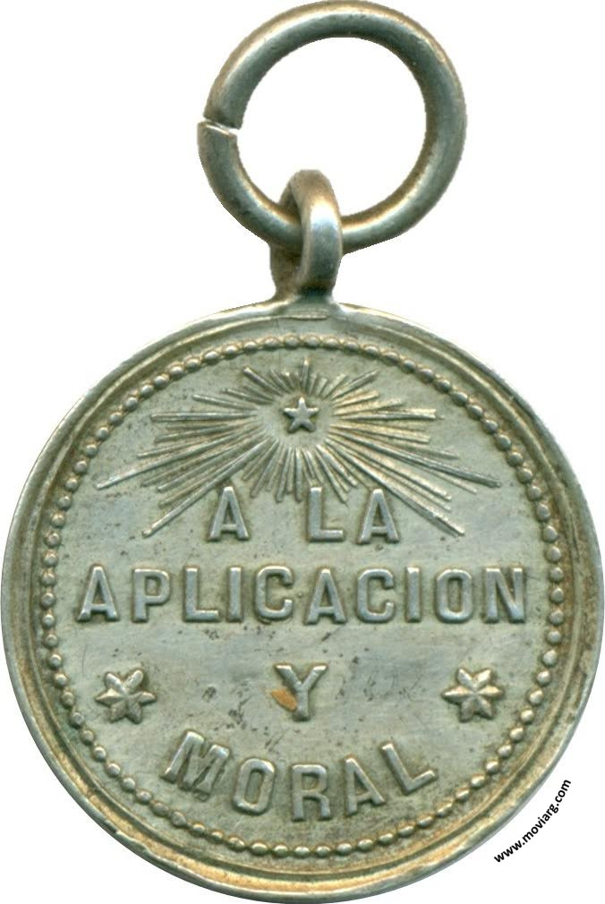 Anverso: CONSEJO ESCOLAR DE SN. NICOLÁS DE BARI / 1879 Reverso: A LA / APLICACION / Y / MORAL Referencia: | |