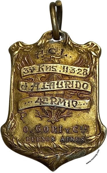 Anverso: Campo: BIANCHI Reverso: [ A. C. L. ] / [ 37 KMS. 11-3-28 ] / [ J. A. LAURIDO ] / [ 4TO. PMIO. ] / O. GORI Y CIA. / BUENOS AIRES Canto: Liso: PLATA / VERMEIL Referencia: | |