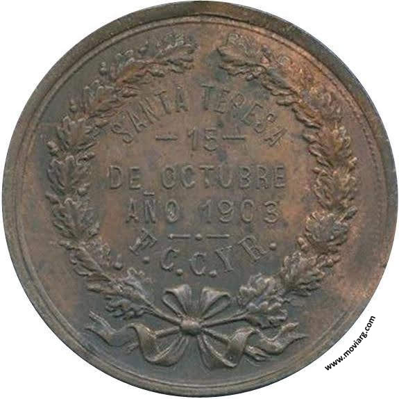 Anverso: CONMEMORACION DE SU SANTA PATRONA. Firma: BELLAGAMBA Y ROSSI Reverso: SANTA TERESA / - 15 - / DE OCTUBRE / AÑO 1903 / F.C.C.YR. Referencia: | |