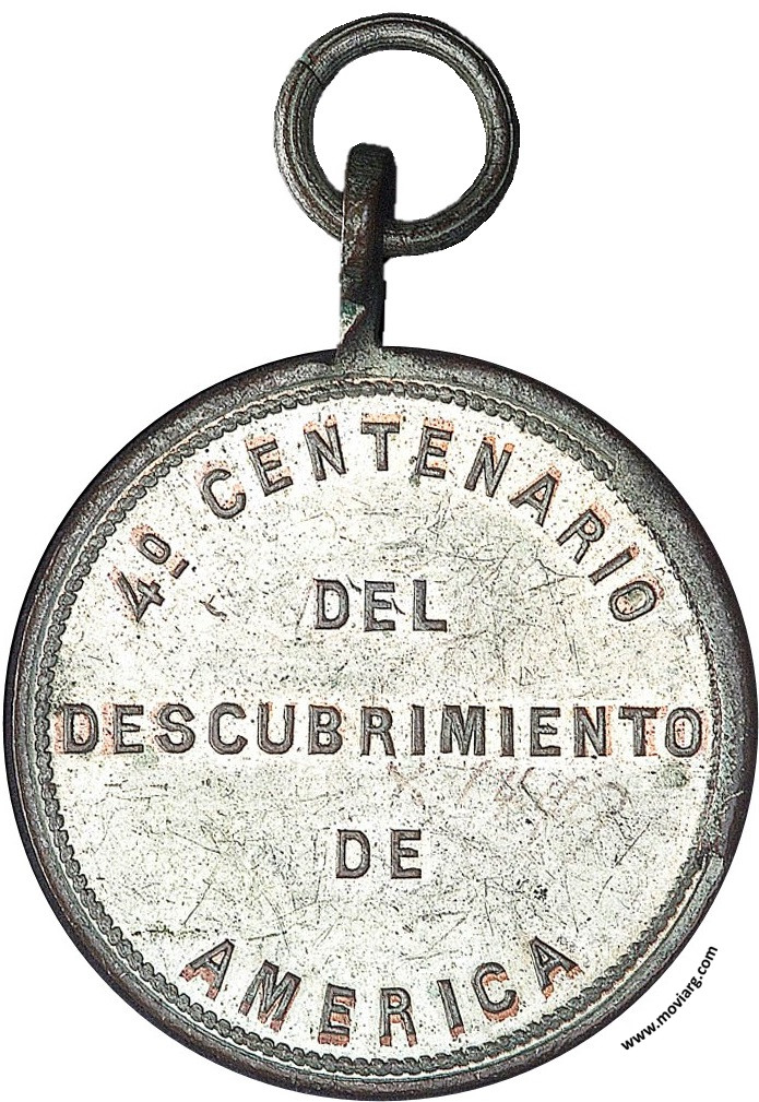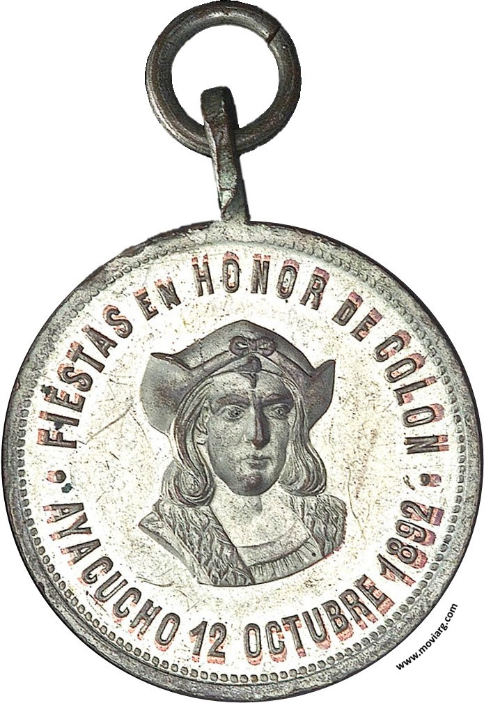 National Maritime Museum, Greenwich, London Anverso: FIESTAS EN HONOR DE COLON / AYACUCHO 12 OCTUBRE 1892Reverso: 4° CENTENARIO / DEL / DESCUBRIMIENTO / DE / AMERICA Referencia: | |