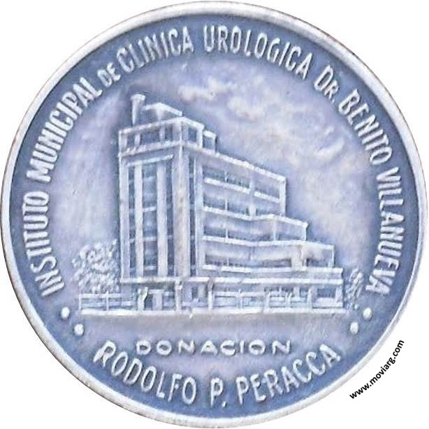 Anverso: INSTITUTO MUNICIPAL DE CLINICA UROLOGICA DR. BENITO VILLANUEVA / DONACION / RODOLFO P. PERACCA Reverso: PRESIDENTE / DE LA / NACION / DR. ROBERTO M. ORTIZ / INTENDENTE MUNICIPAL / DR. ARTURO GOYENECHE / DIRECTOR DE LA ASISTENCIA PUBLICA / DR. JOSE W. TOBIAS / 1ER. DIRECTOR DEL INSTITUTO / DR. LUIS FIGUEROA ALCORTA / 30 DE ABRIL 1940 Referencia: | |