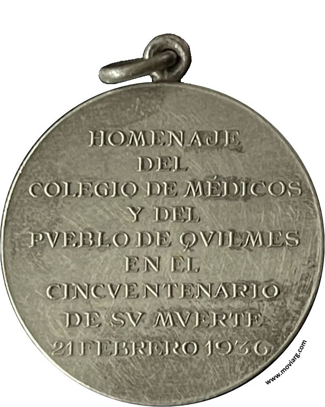Anverso: DR. EDMUNDO F. FIERRO / 1857 - 1886. Firma: CONSTANTE ROSSI Reverso: HOMENAJE / DEL / COLEGIO DE MÉDICOS / Y DEL / PUEBLO DE QUILMES / EN EL / CINCUENTENARIO / DE SU MUERTE / 21 FEBRERO 1936 Referencia: | |