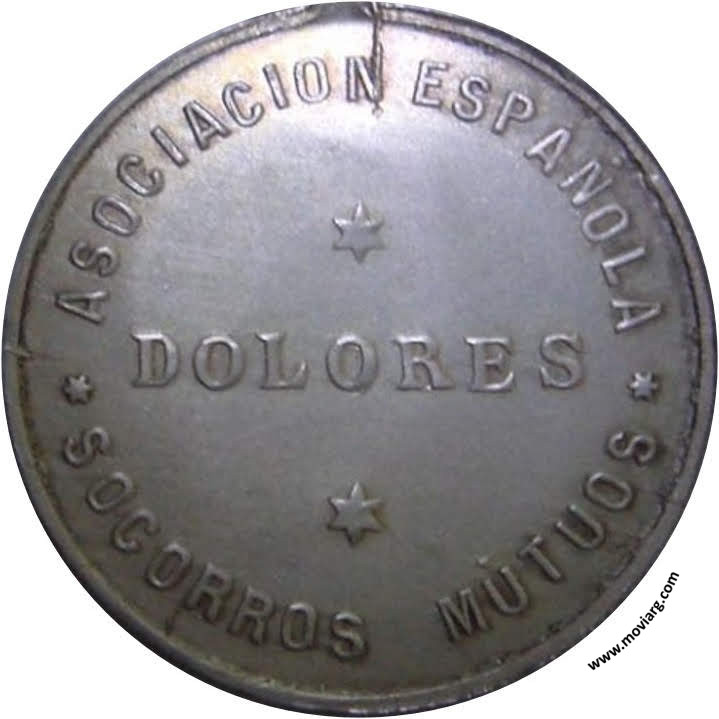 Anverso: FUNDADA EL 25. DE DICIEMBRE DE 1882. Reverso: ASOCIACION ESPAÑOLA / SOCORROS MÚTUOS / DOLORES Referencia: | |