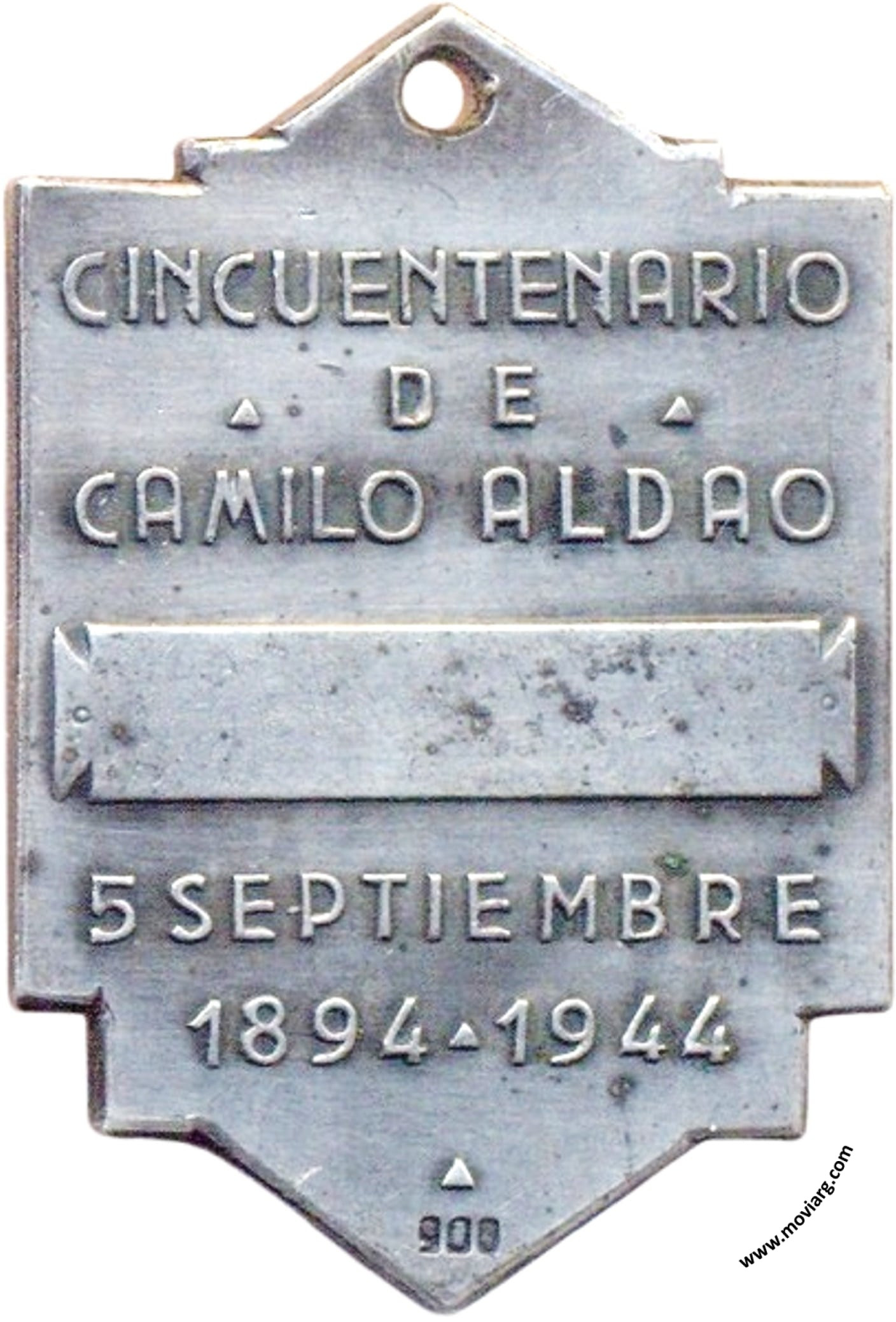 Anverso: Firma: O. GALLO Reverso: CINCUENTENARIO / DE / CAMILO ALDAO / 5 SEPTIEMBRE / 1894 · 1944. Exergo: [ 900 ] Referencia: | |