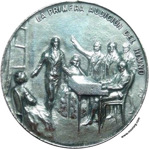 Anverso: ACADEMIA MOZART / SEAN ETERNOS LOS LAURELES QUE SUPIMOS CONSEGUIR / INSTITUCIÓN ARGENTINA DE MÚSICA / 1810 - CENTENARIO - 1910. Firma: C. Y AF. ROSSI Reverso: LA PRIMERA AUDICIÓN DEL HIMNO. Firma: CV Referencia: | |