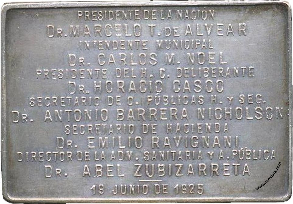 Anverso: MUNICIPALIDAD DE BUENOS AIRES / INAUGURACIÓN DE LA MATERNIDAD / DEL HOSPITAL TORNÚ. Firma: CONSTANTE ROSSI Reverso: PRESIDENTE DE LA NACIÓN / DR. MARCELO T. DE ALVEAR / INTENDENTE MUNICIPAL / DR. CARLOS M. NOEL / PRESIDENTE DEL H. C. DELIBERANTE / DR. HORACIO CASCO / SECRETATIO DE O. PÚBLICAS H. Y SEG. / DR. ANTONIO BARRERA NICHOLSON / SECRETARIO DE HACIENDA / DR. EMILIO RAVIGNANI / DIRECTOR DE LA ADM. SANITARIA Y A. PÚBLICA / DR. ABEL ZUBIZARRETA / 19 JUNIO DE 1925 Canto: Liso. PLATA Referencia: | |