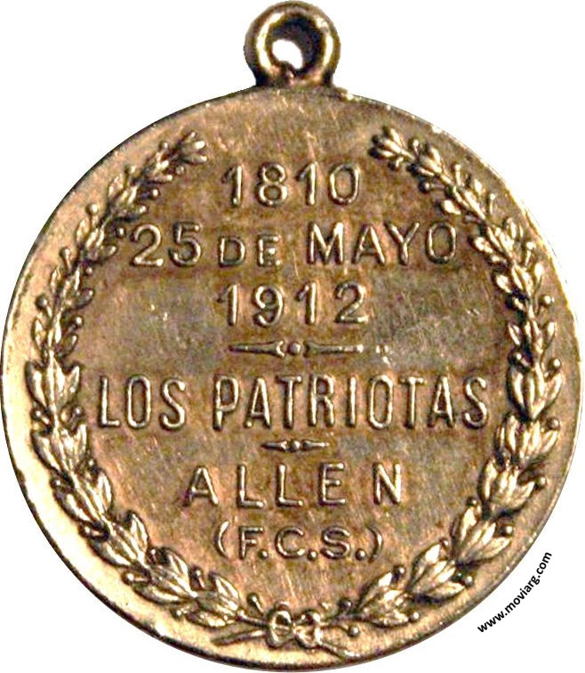 proyectoallen com ar Anverso: OID / MORTALES / EL GRITO / SAGRADO...Reverso: 1810 / 25 DE MAYO / 1912 / LOS PATRIOTAS / ALLEN / ( F.C.S. ) Referencia: | |