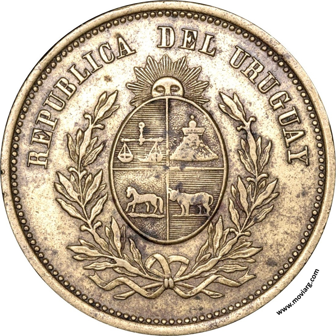 rpnumis Anverso: REPUBLICA DEL URUGUAYReverso: SALUD Y FELICIDAD / 1890 Canto: Estriado Recto Referencia: | |