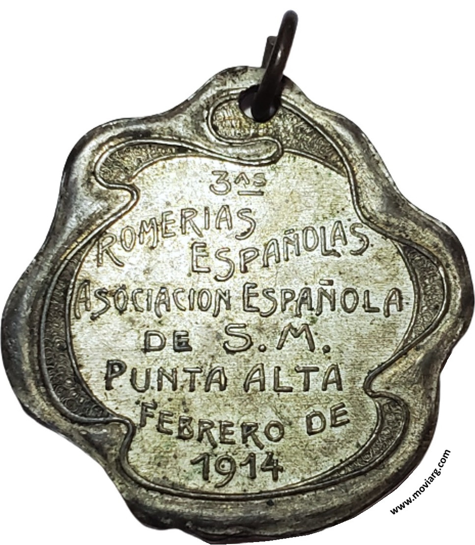 | Año: 1914 Romerías Metal: Plateado - Peso: 12.13gr - Módulo: 30.66x33.26mm - Espesor: 1.9mm - Rotación: 12hrs Grabador: Juan Gottuzzo y Ca. | |