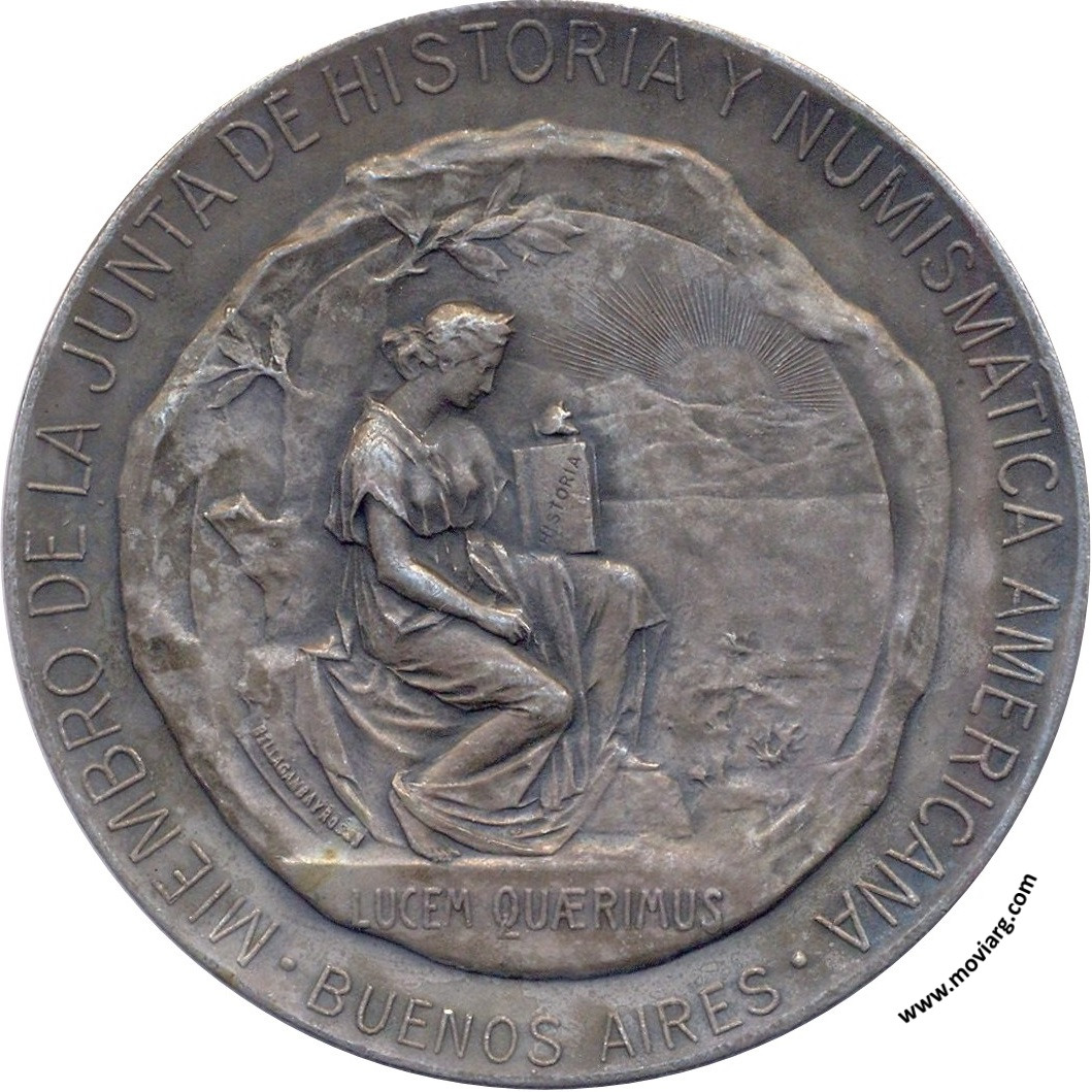 Anverso: SAMUEL LAFONE QUEVEDO / 19 / XI / 1903 / 18 / VI / 1920. Firma: CONST. ROSSI Reverso: MIEMBRO DE LA JUNTA DE HISTORIA Y NUMISMÁTICA AMERICANA / BUENOS AIRES. Campo: LUCEM QUÆRIMUS. Firma: BELLAGAMBA Y ROSSI Referencia: | |