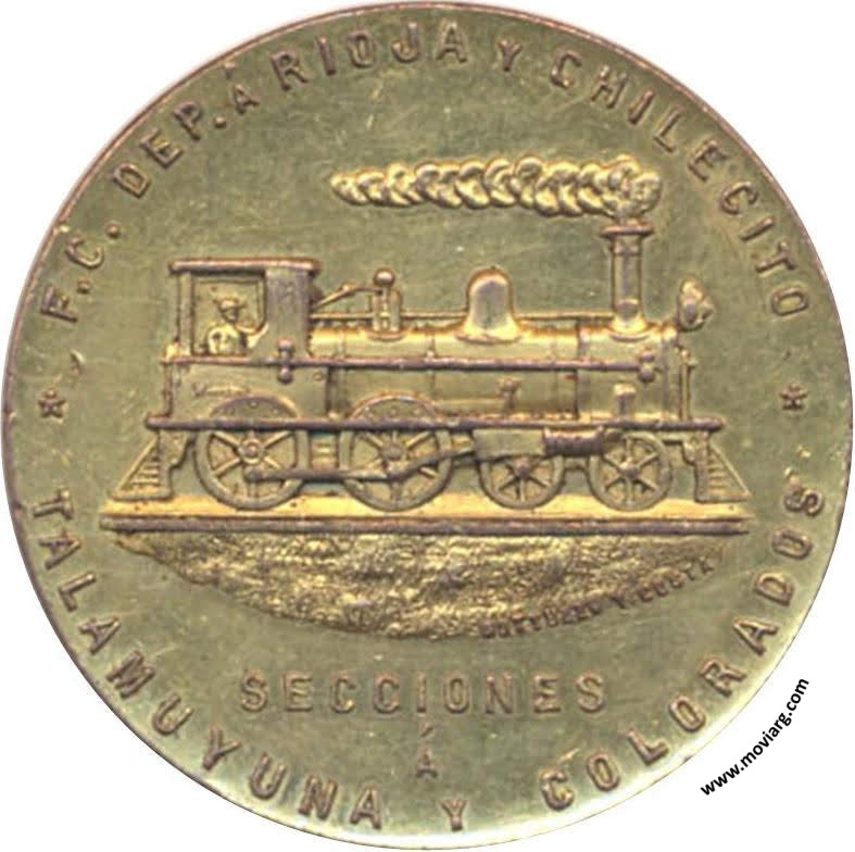 Anverso: F.C. DEP. Á RIOJA Y CHILECITO / SECCIONES / Á / TALAMUYUNA Y COLORADOS. Firma: GOTTUZZO Y COSTA Reverso: DIRECTOR / DEPTO. DE / O.P. DE LA NACION / CONSTRUCTOR / ARTURO CASTAÑO / 24 NOVIEMBRE / 1897 Referencia: | |