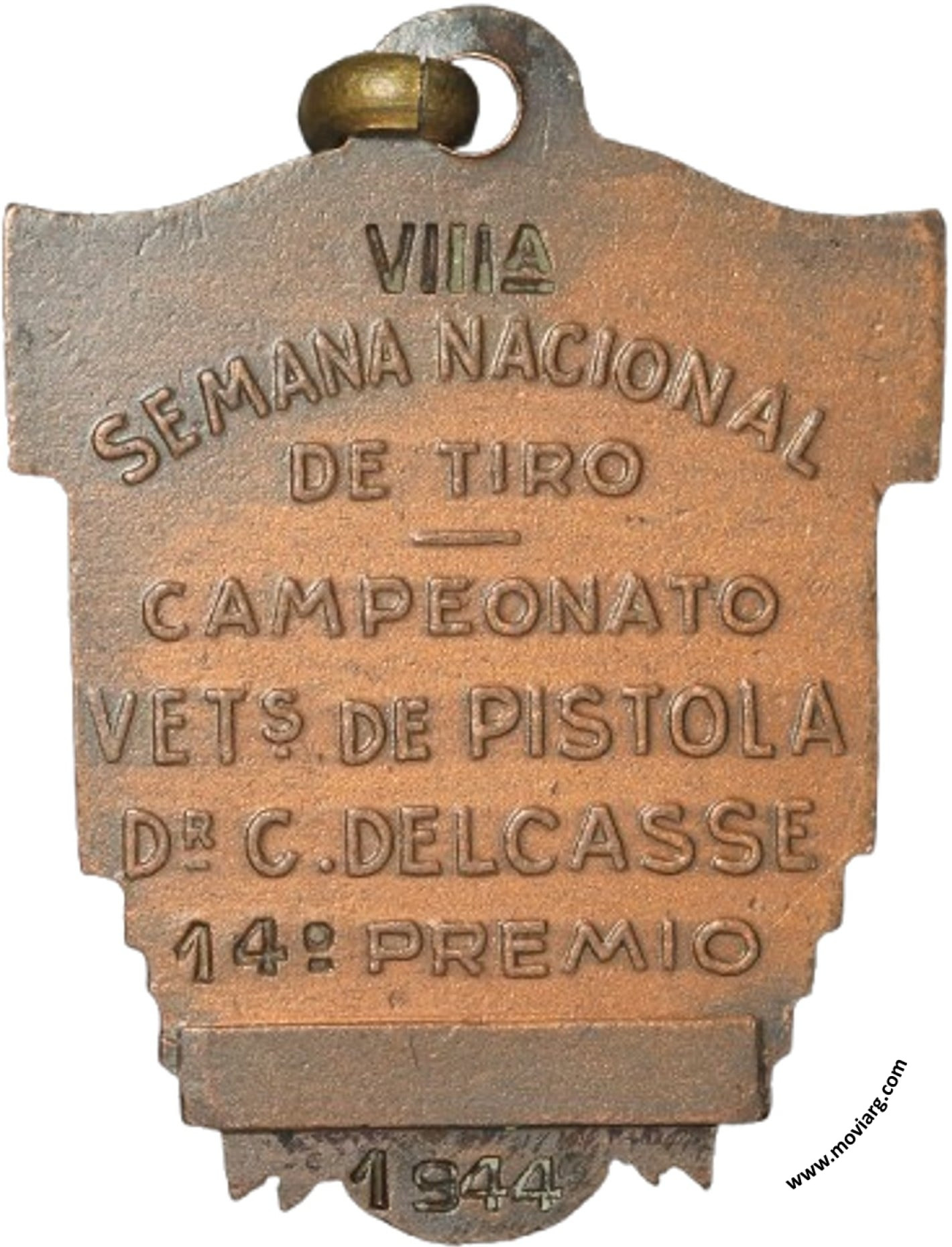 Anverso: Reverso: [ VIIIA. ] / SEMANA NACIONAL / DE TIRO / CAMPEONATO / VETS. DE PISTOLA / DR. C. DELCASSE / [ 14° ] PREMIO / [ 1944 ] Referencia: | |